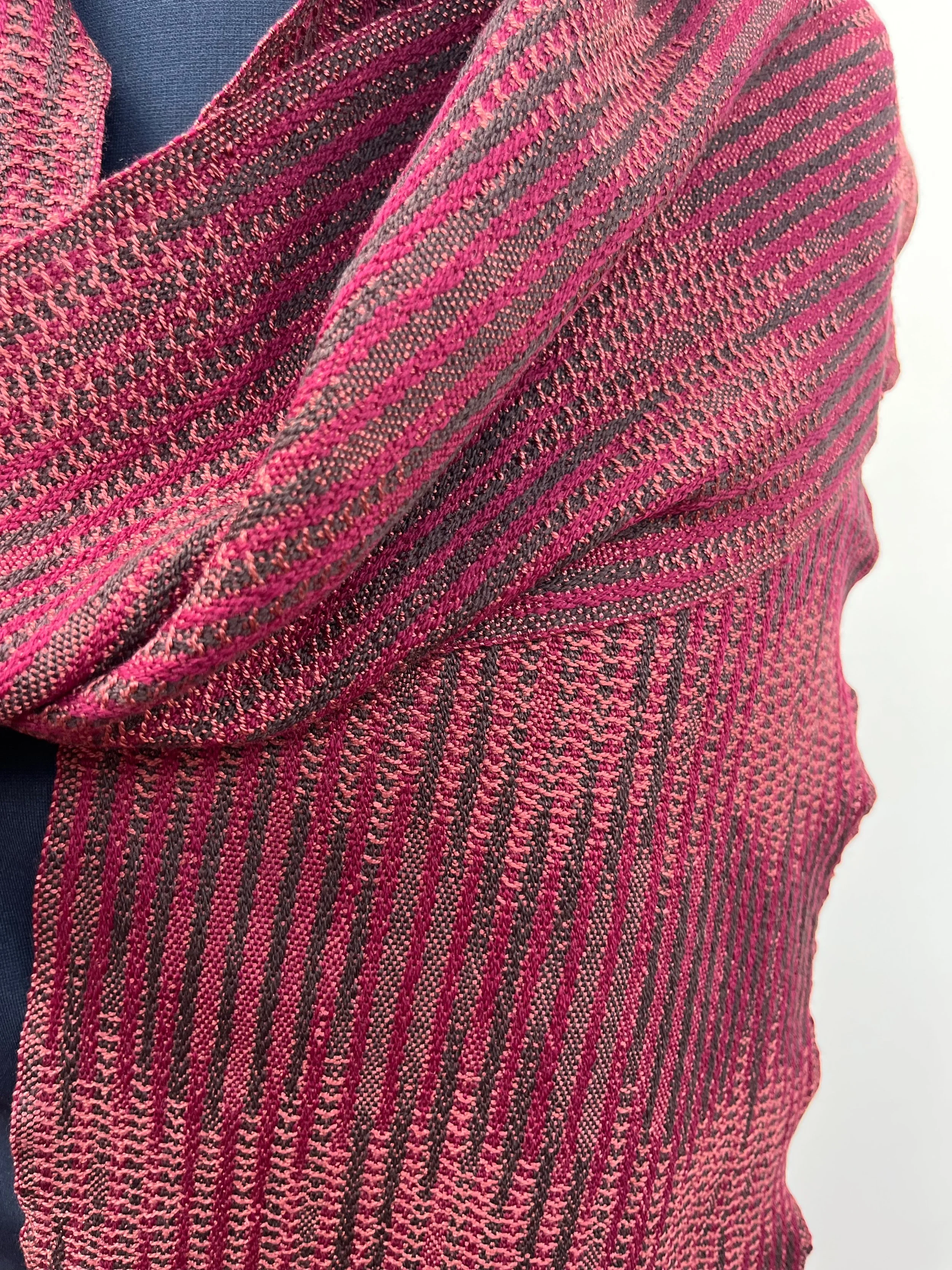 As a guide, most scarves/shawls are generous in size — large enough to wrap around the shoulders or wear as a scarf. -